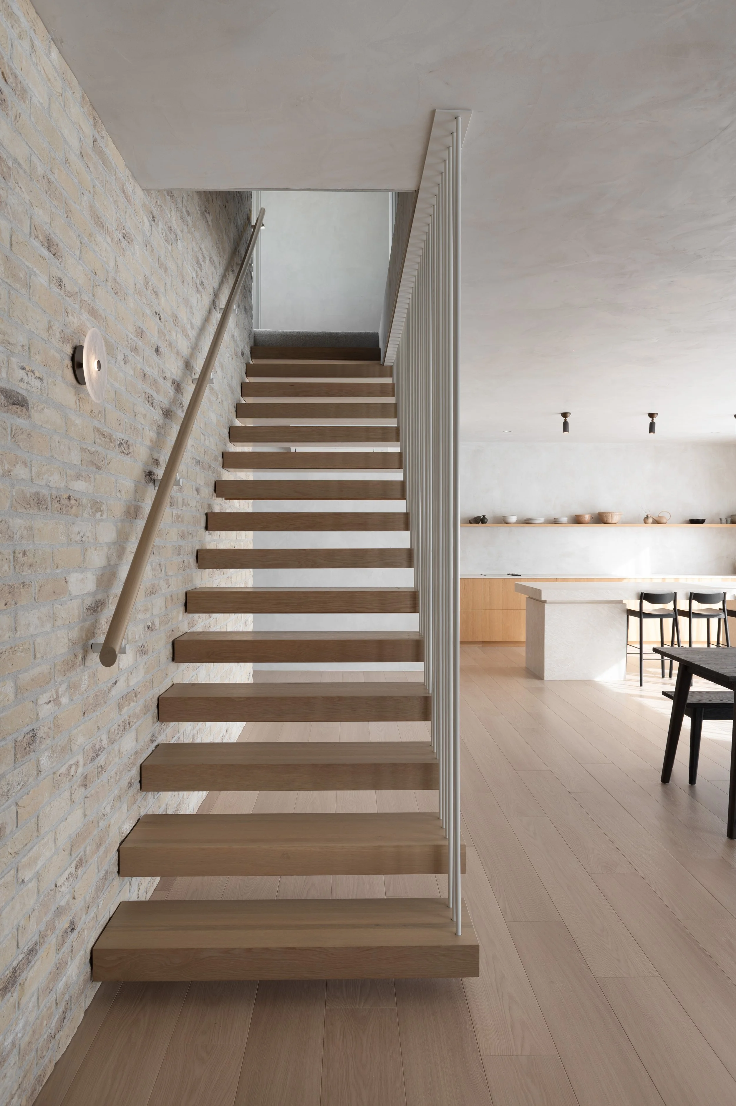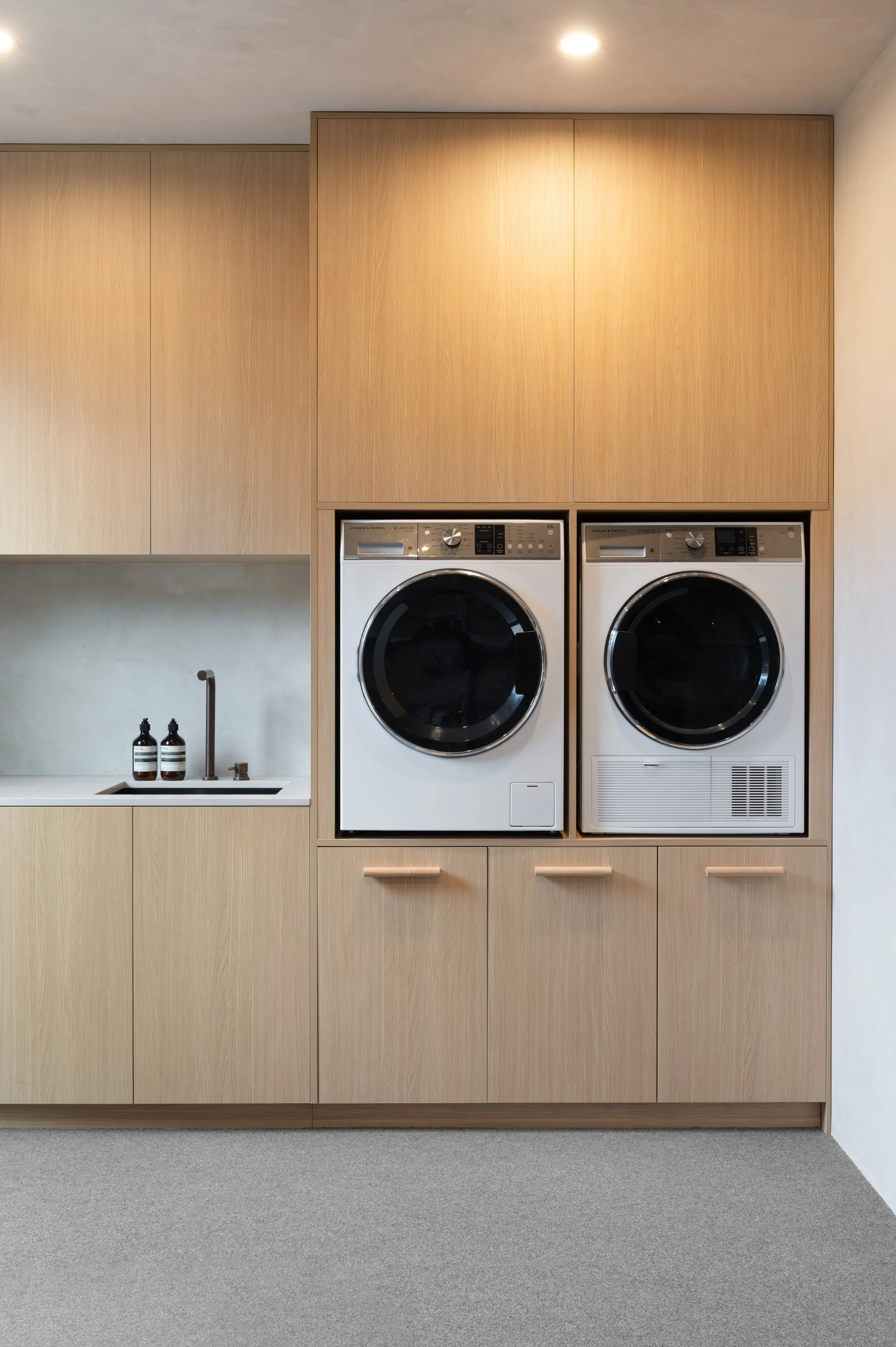 Alongside the kitchen, King & Co crafted an oak handrail with built in LED to compliment the impressive staircase, and built in laundry to match the house style.