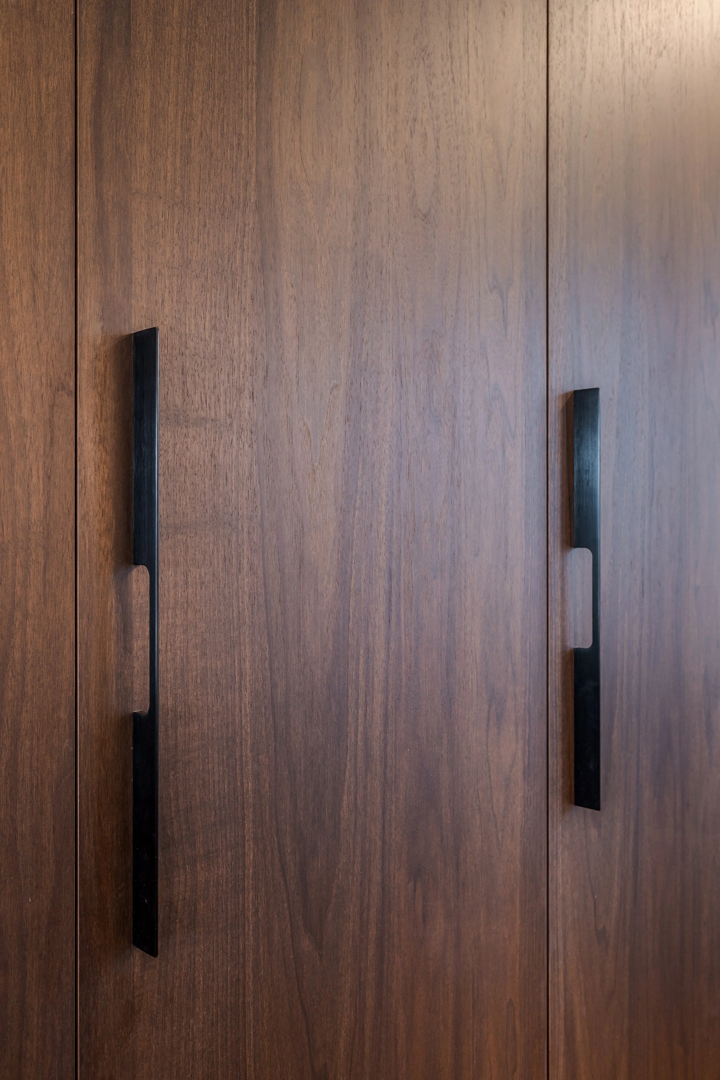 This kitchen features Vidaspace Shinnoki Stardust Walnut panels paired with the Unique Calacatta Gold benchtop. Laminex Haze Acrylic panels were used for the overhead cabinetry and the scullery. The refined design has been achieved by using features such as negative details and push-to-open cabinetry which seamlessly give the clean lines and definition the clients were hoping to achieve.