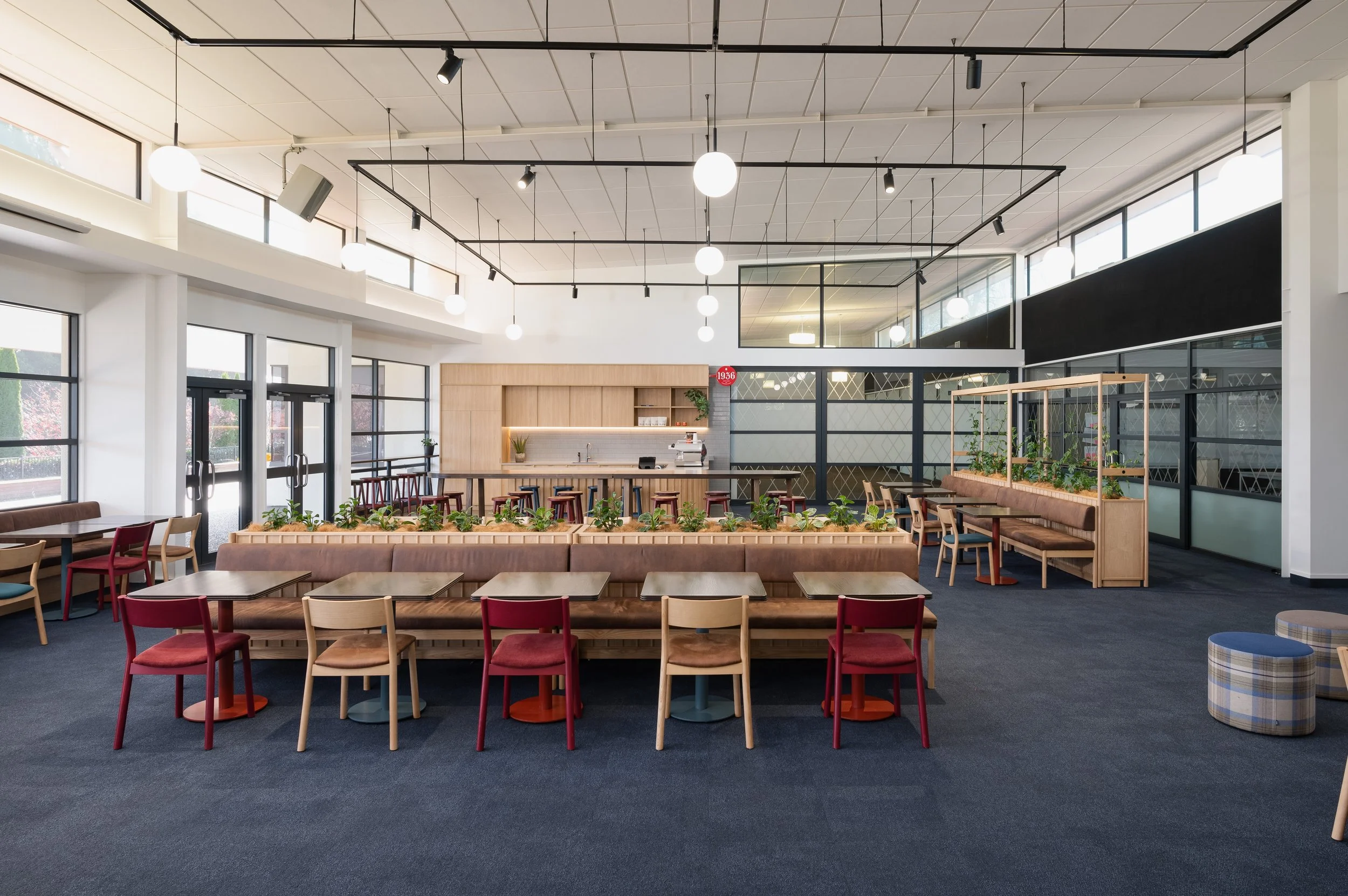 The vision from the school was for this senior common room hub to mimic workplaces and cafes the students will be using in the real world to have interviews, conversations and meetings in their future.